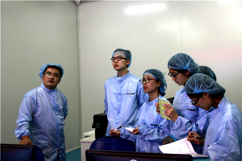 在北京東方淼森公司,企業相關負責人分別從生產中心整體介紹、植物提取基本方法和生產工藝流程、植物提取液工業化轉化及生產方式、植物提取液生產質量管理及控制過程、生產設備結構原理及實踐方式幾個方面向同學們做了詳細講解。通過負責人的講解,同學們從工業生產方面重新認識了植物原料提取的基本原理,并且從該公司“做有思想的植物原料”這一核心理念受到啟發,立志靈活學習,展現學科特色。隨后,實踐團分成三組分別參觀了原料庫房、生產車間和質檢中心。在參觀過程中,每一位負責人都嚴謹負責,耐心講解,讓同學們近距離接觸了植物原料的提取、脫色、過濾、濃縮、保存、質量檢驗等流程,對課本知識在實踐中的應用有了深刻的理解。同時,負責人細致講解了生產過程中的三廢處理問題,同學們都結合專業知識和環保主題進行了積極提問交流。