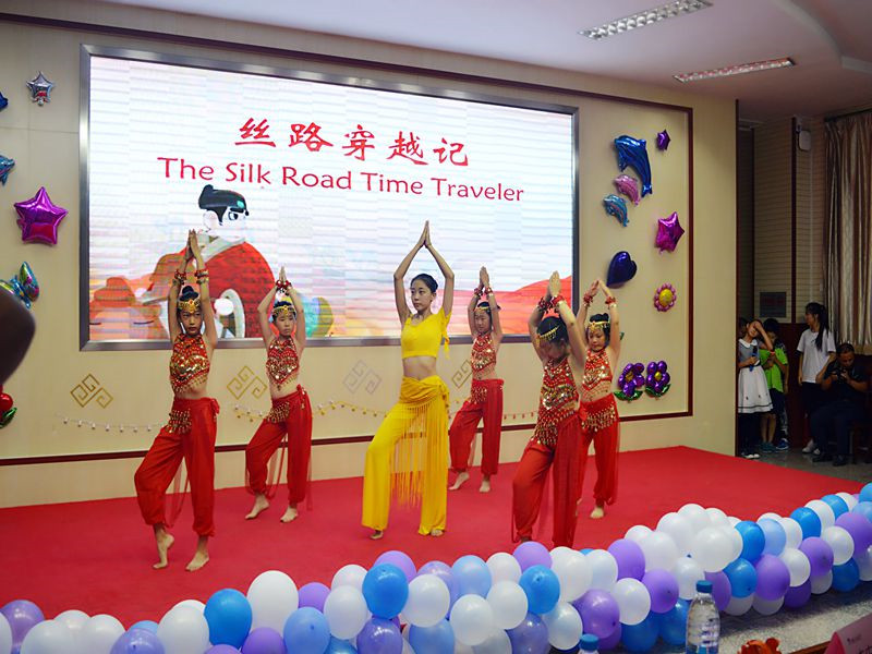 在平常的課堂講授之外,實(shí)踐分團(tuán)成員利用課余時間和學(xué)生一起針對最后的實(shí)踐成果公開課編排了展示附小精品種子課程特點(diǎn)的“歡迎來附小”情景劇、通過歌聲放飛成長夢想的“歡樂好聲音”音樂劇、從全新文化視角重溫絲綢之路的“One Road One Dream”原創(chuàng)雙語表演劇。