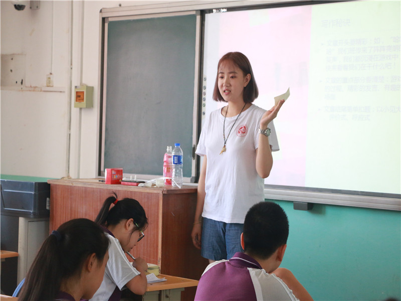 回顧支教的五天歷程,支教老師和同學(xué)們從陌生到相知再到熟悉——從日常課程到課下互動,再到社團(tuán)活動、敬老院之行。一路走來,老師和同學(xué)們經(jīng)歷了酸甜苦辣,也都從中得到了成長。馬佳昆在支教活動的最后一天說:“我想給我們班的孩子們上好最后一節(jié)文學(xué)賞析課”,體現(xiàn)大家時間短暫但感情深厚的依依不合。劉美娟上完硬筆書法課后說:“同學(xué)們上課都很認(rèn)真,一筆一劃地書寫,從他們身上我看到了堅持與專注”,教學(xué)相長,行為世范,感悟到做老師的不易和育人成才的成就感。
