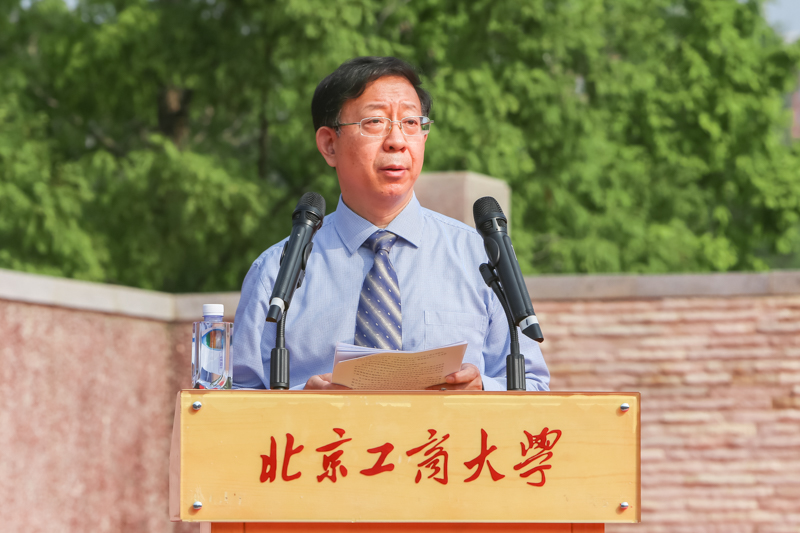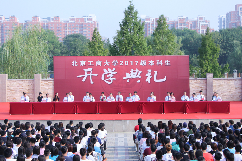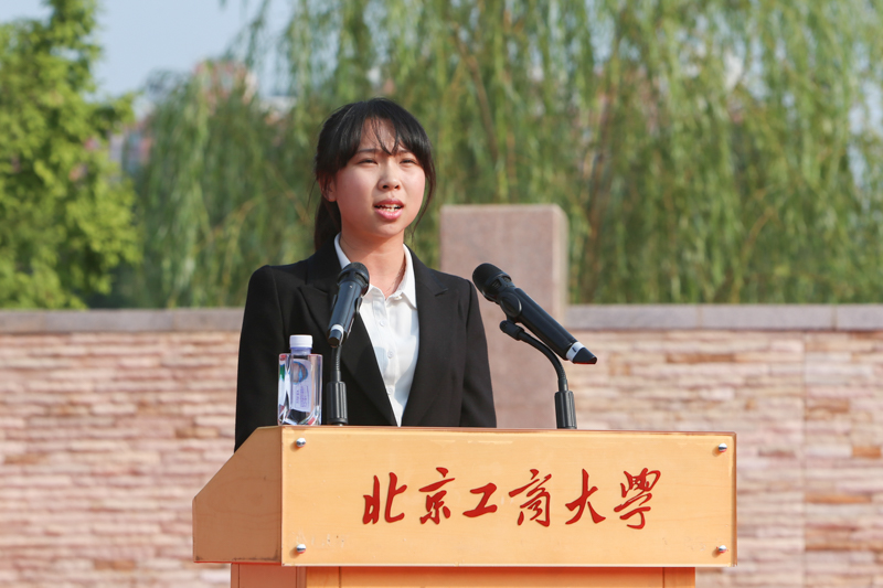 典禮在莊重的國歌聲中拉開帷幕,2017級新生代表、留學生代表、在校生代表分別發言。2017級新生代表材料與機械工程學院機械172班孫心悅表達了圓夢的喜悅和對用汗水與拼搏邁入了北工商這片熱土的同窗們的祝賀,分享了她眼中的北工商。她以“求真、立德、勤奮、創新”八字校訓為指引,闡釋了對大學生活規劃的理解。她倡議同學們在未來四年,追求真理、胸懷家國、堅守道德、勤奮耕耘,努力成為具有創新品質、國際視野的北工商學子。她希望和同學們一起帶上必勝的信念,乘上滿富理想的帆舟,用勤奮和努力做槳,遨游在“北工商”這片知識的海洋里,向著成功的彼岸全力開進!