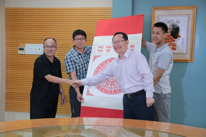 在歡快的樂曲和熱烈的掌聲中,學校黨委書記譚向勇為從教三十年的教師代表頒發榮譽證書并合影留念。藝傳學院馬飛老師還為此次教師節獻上自己的剪紙作品“百福圖”,祝福學校的明天更加美好。