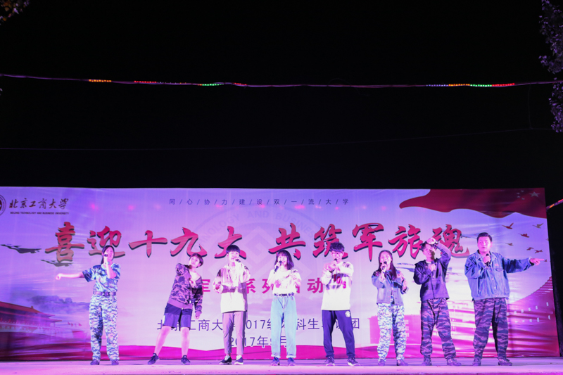 軍訓(xùn)育人不拘訓(xùn)練場。2017級(jí)軍訓(xùn)期間,訓(xùn)練中學(xué)生一天都沒有休息。為了鼓舞士氣,在火熱的訓(xùn)練之余,以“喜迎十九大 共筑軍旅魂”為主題的各類活動(dòng)也有序展開。通過活動(dòng),一方面勞逸結(jié)合,張弛有度,使參訓(xùn)學(xué)生體力得以調(diào)整;另一方面,對(duì)學(xué)生開展愛國主義、集體觀念等教育。
