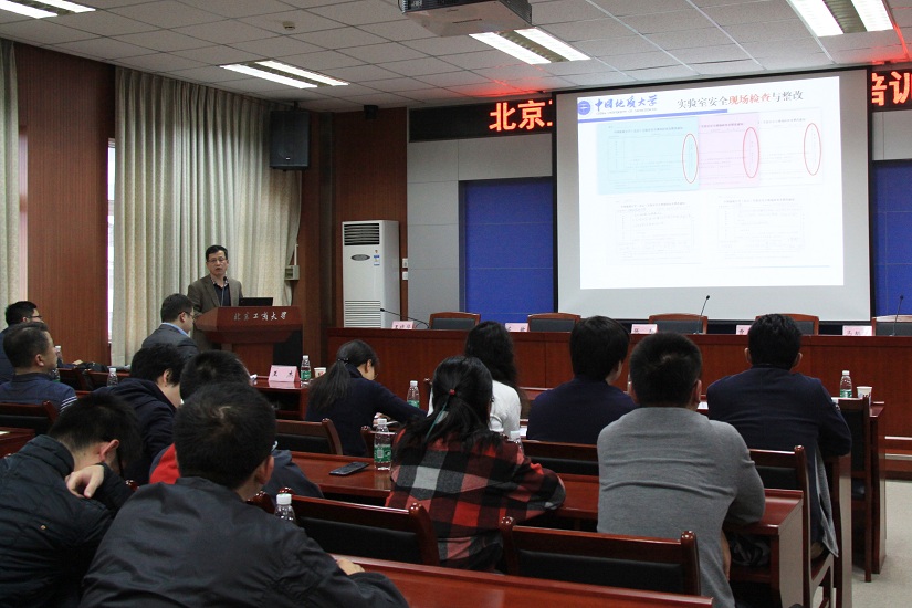 國(guó)有資產(chǎn)管理處處長(zhǎng)王曉華就9月22日學(xué)校實(shí)驗(yàn)室安全檢查中發(fā)現(xiàn)的問(wèn)題,從管理與監(jiān)督、行為與習(xí)慣、設(shè)備與條件三方面進(jìn)行了通報(bào),并對(duì)學(xué)校實(shí)驗(yàn)廢棄物處置工作的開(kāi)展情況作了介紹。中國(guó)地質(zhì)大學(xué)(北京)國(guó)有資產(chǎn)與實(shí)驗(yàn)室管理處王杰處長(zhǎng)以近年高校實(shí)驗(yàn)室安全事故案例分析為切入點(diǎn),從強(qiáng)化安全責(zé)任、落實(shí)防范措施、嚴(yán)格執(zhí)行規(guī)范三方面分享了實(shí)驗(yàn)室安全管理工作中的經(jīng)驗(yàn)。北京大學(xué)實(shí)驗(yàn)室設(shè)備管理部周勇義副部長(zhǎng)在報(bào)告中解讀了高校實(shí)驗(yàn)室安全管理工作內(nèi)涵,梳理了高校實(shí)驗(yàn)室安全風(fēng)險(xiǎn)點(diǎn)與要點(diǎn),給出了加強(qiáng)高校實(shí)驗(yàn)室安全的思考與建議。