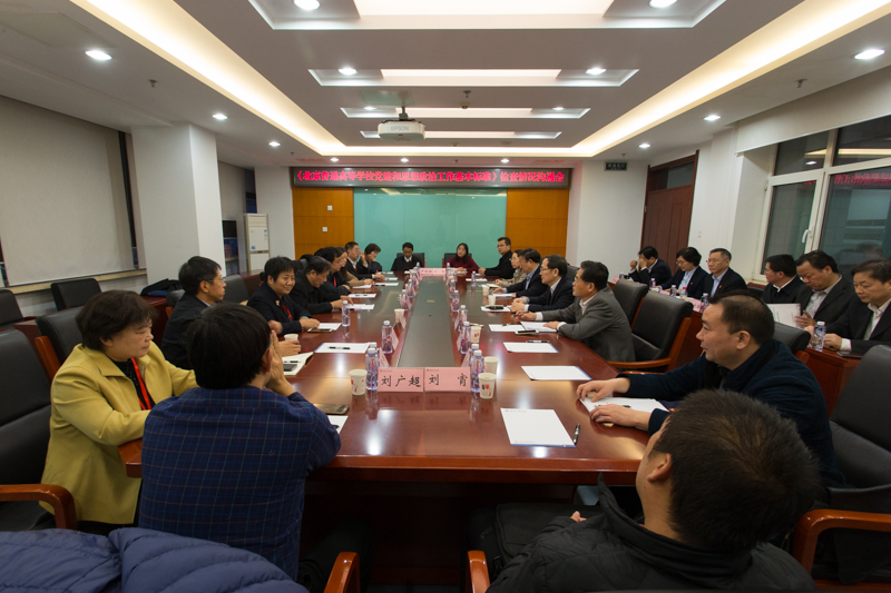 張維維指出,《基本標準》是北京高校黨建和思想政治工作的基本規范,2003年市委教育工委印發以來,已經修訂了3次,每5年集中檢查一次。今年開展的基本標準集中檢查是北京市委的一項重要工作,是推動高校深入學習貫徹黨的十九大精神和北京市第十二次黨代會精神的主要舉措,也是深入推進全國和北京市高校思想政治工作會議精神落地生根的重要舉措。這次檢查除了對標檢查外,還將作為明年評選第八次北京市黨建和思想政治工作先進校的一個重要參考和依據。
