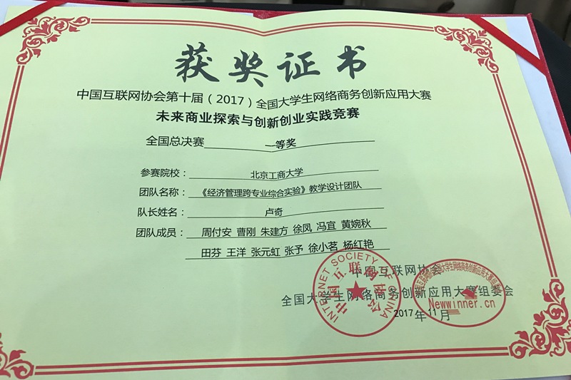 11月19日,第十屆(2017)全國大學生網絡商務創新應用大賽——未來商業探索與創新創業實踐競賽全國總決賽舉辦。我校經濟學院文科實踐中心盧奇教授率領的實踐教學團隊以“《經濟管理跨專業綜合實驗》教學設計”榮獲教師組一等獎。