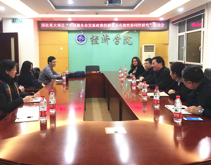 11月30日,我校召開了2017年度國家社會科學基金重大項目“中國服務業(yè)發(fā)展政策的演變及有效性協(xié)同性研究”啟動會。首席專家李朝鮮副校長出席啟動會。子課題負責人經濟學院方燕教授、李麗教授和余向華副教授,商學院副院長孫永波教授,國家發(fā)展與改革委員會國際合作中心副主任與研究部主任劉建興博士以及課題骨干成員經濟學院院長徐丹丹教授、倪國華教授、王勇副教授、孫寧寧博士和程熙鎔博士參加了啟動會。
