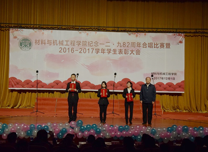 12月1日,材料與機械工程學院在良鄉校區舉行2016-2017學年表彰大會暨紀念“一二·九”運動82周年合唱比賽。學院領導、班主任、輔導員及學生參加表彰大會,并觀看合唱比賽。