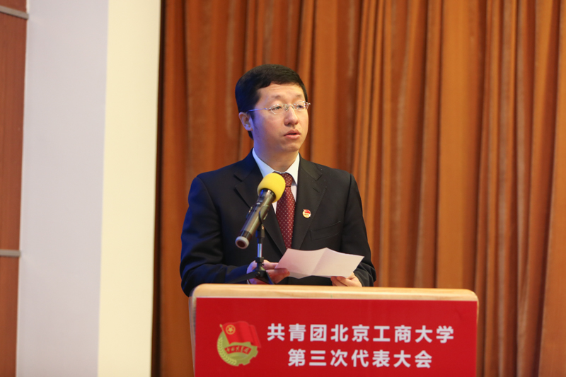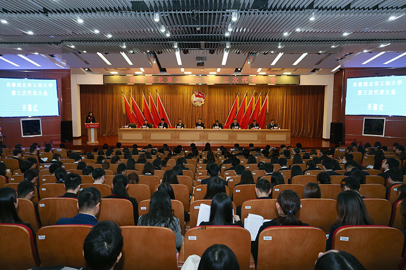 12月9日上午,共青團北京工商大學第三次代表大會在良鄉校區開幕。共青團北京市委員會副書記李健、共青團北京市委員會大學中專工作部部長張秀峰,我校黨委書記譚向勇、黨委副書記張德玉、副校長方德英,中國人民大學團委書記李鵬、校工會副主席張龍等出席開幕式。中國傳媒大學、中國礦業大學、中國青年政治學院、北京工業大學、首都師范大學等30余所兄弟院校團委負責人到會祝賀,北京科技大學、北京航空航天大學、北京交通大學等20余所高校團委發來賀信。