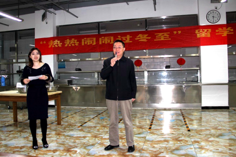 副校長(zhǎng)李朝鮮首先致辭,他向留學(xué)生介紹了冬至吃餃子的來歷和習(xí)俗,以及中醫(yī)藥食同源的道理。他預(yù)祝留學(xué)生們冬至快樂、元旦快樂,希望留學(xué)生們能好好享受在北工商的學(xué)習(xí)和生活。