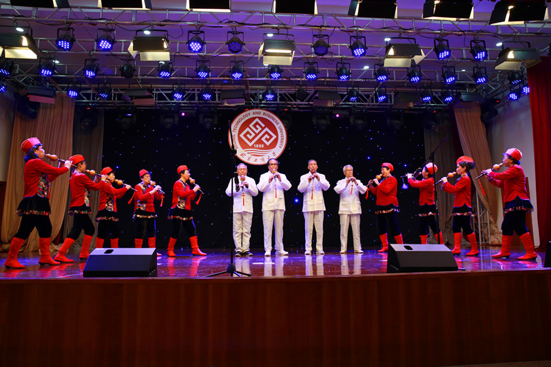 聯(lián)歡會(huì)由退休教師鄭燕平和潘潔主持。聯(lián)歡會(huì)在管樂(lè)團(tuán)演奏的節(jié)奏明快的《大頂子山高又高》樂(lè)曲聲中拉開(kāi)帷幕。舞蹈隊(duì)表演的《中國(guó)同心圓》體現(xiàn)了凝聚了56個(gè)民族13億人民對(duì)實(shí)現(xiàn)民族偉大復(fù)興的共同向往;京劇隊(duì)表演的京歌《梨花頌》和京劇《楊門(mén)女將》選段《風(fēng)瀟瀟》展現(xiàn)了國(guó)粹的魅力;古箏合奏《云水禪心》旋律流暢,婉轉(zhuǎn)動(dòng)聽(tīng);時(shí)裝隊(duì)表演的《茉莉花》展示了她們高雅的品味和對(duì)美的詮釋;葫蘆絲合奏《經(jīng)典老歌聯(lián)奏》曲調(diào)活潑明快,表演形式新穎;《柔力球表演》展示了傳統(tǒng)太極運(yùn)動(dòng)和現(xiàn)代元素巧妙的融合;詩(shī)朗誦《不忘初心》體現(xiàn)了離退休教職工“不忘初心跟黨走,牢記使命建新功”的誓言;合唱團(tuán)演唱了《蒙古人》《十送紅軍》等經(jīng)典歌曲。離退休老同志中的書(shū)法愛(ài)好者為大家獻(xiàn)上了“不忘初心,同心向黨”主題書(shū)法作品,手工組為大家贈(zèng)送了她們親手制作的福袋和吉祥物。