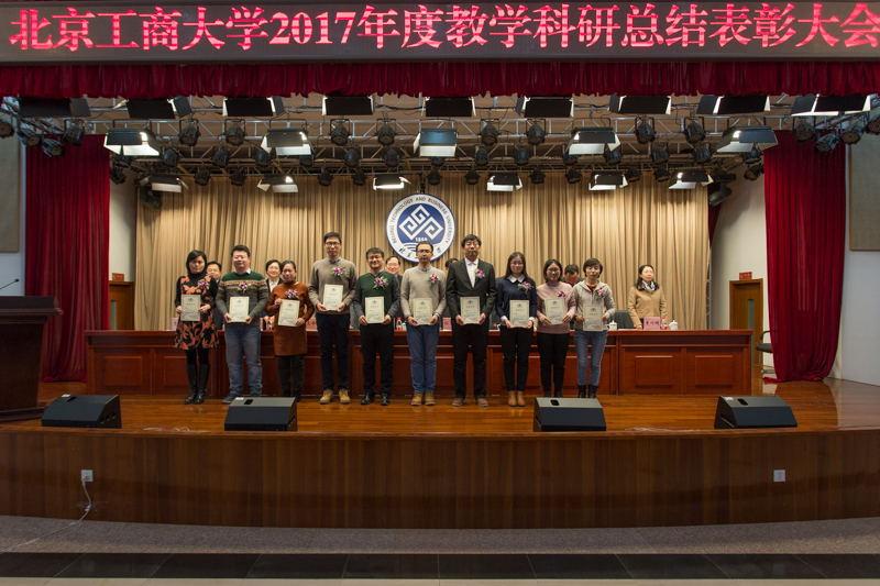孫寶國校長作總結發言。他代表學校黨委和學校行政向受表彰的各位老師和同志們表示熱烈的祝賀,對全校師生員工所做出的貢獻表示崇高的敬意和衷心的感謝,肯定了2017年學校在教學方面和科研方面取得的突出成績,并表示2017年是學校發展歷史上令人難忘的一年。他指出,2017年學校經歷很多大事,良鄉二期工程開工,學校確立了研究型大學建設的總體定位,2018年伊始,博士點授權獲批正在公示,學校發展條件逐步完善,“我們要擼起袖子加油干,一張藍圖往下繪。”他希望在雙一流建設的征程中,全體師生要秉承校訓,“求真、立德、勤奮、創新”,邁出新步伐,取得新進展!