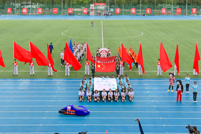 10個學(xué)院的運動員方隊意氣風(fēng)發(fā)、精神抖擻地依次走過主席臺,他們變換的造型、嘹亮的口號彰顯著青春的律動,贏得了全場師生的掌聲和歡呼。理學(xué)院運動員們面帶自信的笑容、踏著豪邁的步伐在主席臺前擺出“我愛BTBU”的圖案,大聲喊出他們對工商的愛和滿懷的豪情;食品學(xué)院運動員們扇動衣衫和綢扇,搖曳生姿,黑白相生,剛?cè)岵堇[了競技體育與傳統(tǒng)文化的匯聚;材機學(xué)子們青春的舞步和鏗鏘的步伐詮釋了眾志成城向著新時代新征程邁進(jìn)的決心,自主研發(fā)的節(jié)能電動車承載著材機人的智慧與希望;計信學(xué)院方隊的同學(xué)們舞動著金色的花球,不斷變換的隊形和動感十足的舞步洋溢著計信學(xué)子蓬勃的朝氣。