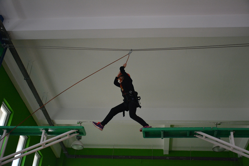 心理素質拓展競賽以“挑戰自我,凝練團隊”為目標,以個人成長的歷程作為線索,開展了一系列地面競技及高空挑戰競賽,學校聘請的專業素質拓展教練承擔此次賽事的安全保障及裁判工作。在教練的帶領下,同學們在離地6米的高空跨越斷橋“挑戰心自我”,成功克服了內心的慌恐、害怕、緊張和猶豫,勇敢突破心理舒適區,增強了自信心;“邁向心健康+傳輸心能量——蛟龍出海+能量傳輸”是個熔煉團隊的項目,所有隊員用綁腿繩將腳連在一塊,橫向一排前進到指定位置,再使用引導槽將小球傳遞至紙杯中,每一組隊員在練習中都遇到了種種困難并積極解決問題,團隊在一次次的摩擦和歡笑中走向成熟;在“奏響心樂章——同心鼓”項目中,所有成員相互信任和配合,并不斷地在實踐中摸索方法和技巧,最終實現自我超越。60名參賽隊員通過以上三個環節的激烈角逐,提升了個人心理效能,凝聚了團隊協作力,展示了各校風采,增加了校際交流,最終北京城市學院摘取桂冠。