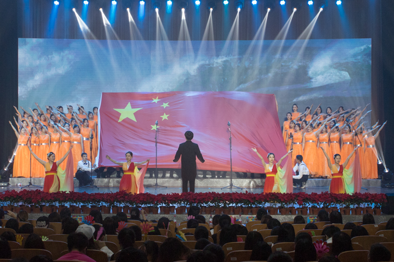 食品學院演唱的《不忘初心》滿懷深情、堅定剛毅,重溫了紅軍戰(zhàn)士用生命和熱血鑄就的崢嶸歲月;外國語學院帶來的《中國速度》奏響時代強音,彰顯祖國的強盛;計算機與信息工程學院的《光榮與夢想》唱出對未來的向往和期待,展示了中華民族的信仰與力量;理學院的《共筑中國夢》歌唱擔當,使同學們從內心深處涌起熱愛祖國的豪情。