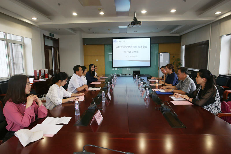 燕寶基金會調研人員首先觀看了我校宣傳片,全面了解學校的整體發展情況。資助中心張倩老師詳細介紹了我校2014—2017級寧夏受助學生在校期間的學習和生活情況及2013級畢業生的就業情況。在國家、北京市以及寧夏燕寶慈善基金會的共同資助下,79名在校學生中,428人次獲得2017學年各類獎助學金,充分展現了這些受助學生積極向上的學習狀態。2013級26名畢業學生中,19人選擇了回到寧夏工作,用自己的青春和學識支持家鄉建設。金融142班楊蓮、財政15班馬小霞代表全體受助學生感謝寧夏燕寶慈善基金會對寧夏貧困學子的慷慨解囊,表示要努力學習,回報燕寶,回報社會。雙方還就捐資助學所面臨的困難問題、創新舉措,尤其如何幫助受助學生更好的成長成才進行了深入交流。