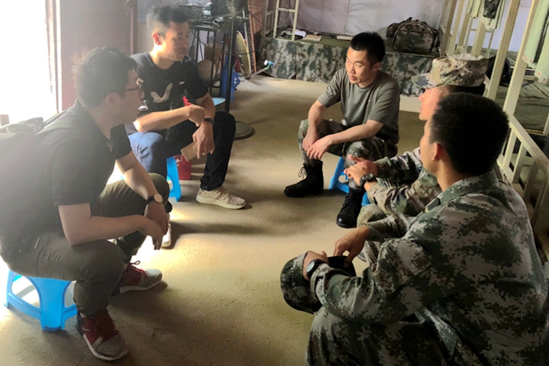 在72軍某裝甲旅,恰逢該部隊(duì)赴定遠(yuǎn)縣駐訓(xùn)。慰問(wèn)教師親身感受到部隊(duì)官兵艱苦的生活條件:潮濕悶熱,沒(méi)有固定廁所,每天限量供水、供電,幾十人擠在破舊的營(yíng)房?jī)?nèi)……在此服役的原經(jīng)貿(mào)154班的吳杰、雷升霖都是學(xué)校2016年第一批民兵隊(duì)員,兩人當(dāng)年相約報(bào)名,共赴軍營(yíng)。經(jīng)過(guò)一年多的磨練,如今兩人都已經(jīng)成為連隊(duì)的骨干。學(xué)生所在連隊(duì)的排長(zhǎng)和領(lǐng)導(dǎo)向?qū)W校老師詳細(xì)介紹了學(xué)生在部隊(duì)期間的表現(xiàn)和成長(zhǎng)經(jīng)歷,對(duì)我校學(xué)生所展現(xiàn)出來(lái)的思想覺(jué)悟和軍事素質(zhì)給予高度肯定,對(duì)學(xué)校老師能主動(dòng)來(lái)到如此艱苦的環(huán)境下慰問(wèn)學(xué)生表示感謝和敬意。武裝部老師向部隊(duì)領(lǐng)導(dǎo)和慰問(wèn)學(xué)生介紹了我校2018年如火如荼的民兵訓(xùn)練情況,學(xué)生紛紛表示,等退伍返校后,也要作為民兵骨干參加訓(xùn)練,把部隊(duì)的好傳統(tǒng)、好作風(fēng)、好素質(zhì)傳遞給更多的學(xué)弟學(xué)妹。
