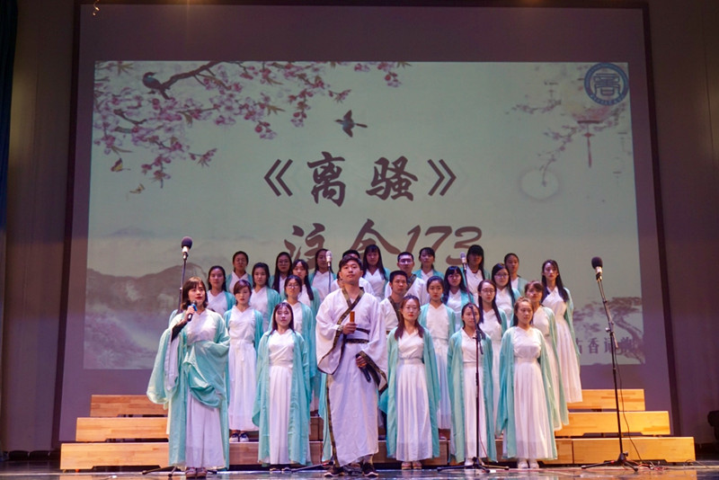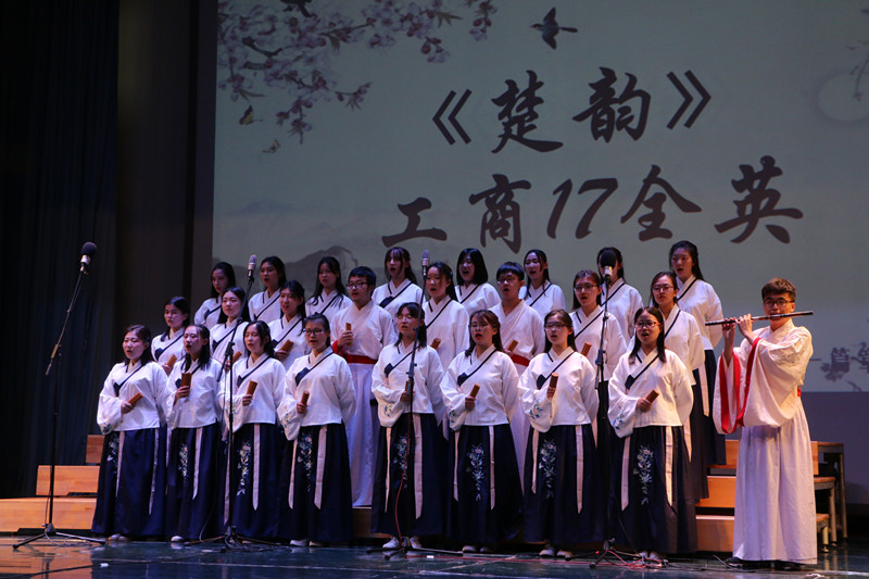 本次比賽,共分成古香詞韻、崢嶸歲月與錦繡河山三個篇章。一首《念奴嬌·赤壁懷古》拉開了比賽的序幕,雄渾蒼涼,大氣磅礴的詩詞一瞬間吸引了同學們的注意力。凄涼雄渾的《楚韻》又仿佛把觀眾們帶到了汨羅江畔。從清新悠揚《水調歌頭》到深情款款的《太陽吟》,從豪氣沖天的《少年中國說》到歌頌錦繡河山的《祖國啊,我親愛的祖國》,沉醉在《還看今朝,中國夢》的同學們,又被《我愛我的祖國》發自內心的呼喊所喚醒。商院學子們在舞臺上放飛青春,激昂澎湃,散發著大學生朝氣蓬勃的青春活力。整個比賽如同一次對祖國波瀾壯闊的歷史回顧,以及對未來生活的美好暢想。同學們時而深情款款、時而激昂奮進、時而質樸自然,充分的展現了商院學子多才多藝的文學氣質。