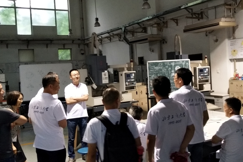 他們參觀了校史館、圖書館、教室、宿舍、運動場等“老地方”。在校史館,講解員從一進門的浮雕講起,回顧了學校的歷史,從學校的前身北京商學院、北京輕工業學院、機械工業管理干部學院的歷史,然后一路走到今日學校的各項成就,校友們都在認真聆聽,仔細瀏覽墻上的照片。通過校史館的沙盤展示,校友們看到了良鄉校區已經建成的校園全貌,還看到了未來即將完成的整體構想,回憶起自己當初上學時學校的樣子,不由得感慨良多,贊嘆不已。藝傳學院工程設計041劉紀森、李丹和范任互相打趣道:“十四年濃濃同學情,我們一起抓兔子,采摘桑葚、蘋果,抓魚,也一起努力學習,互幫互助。”