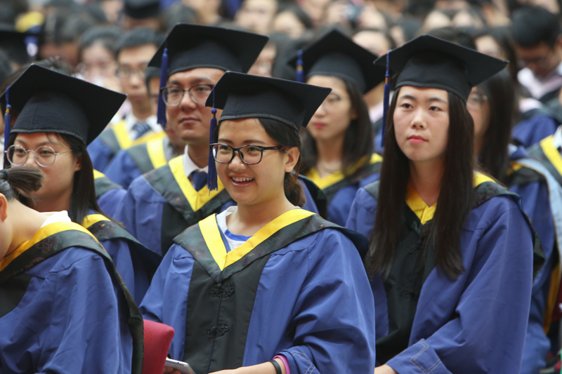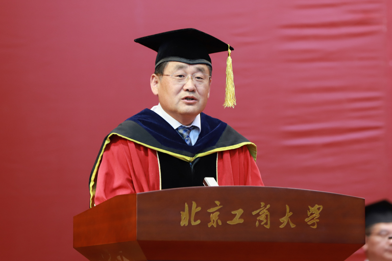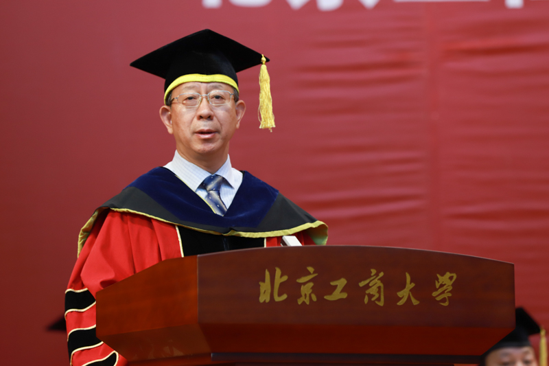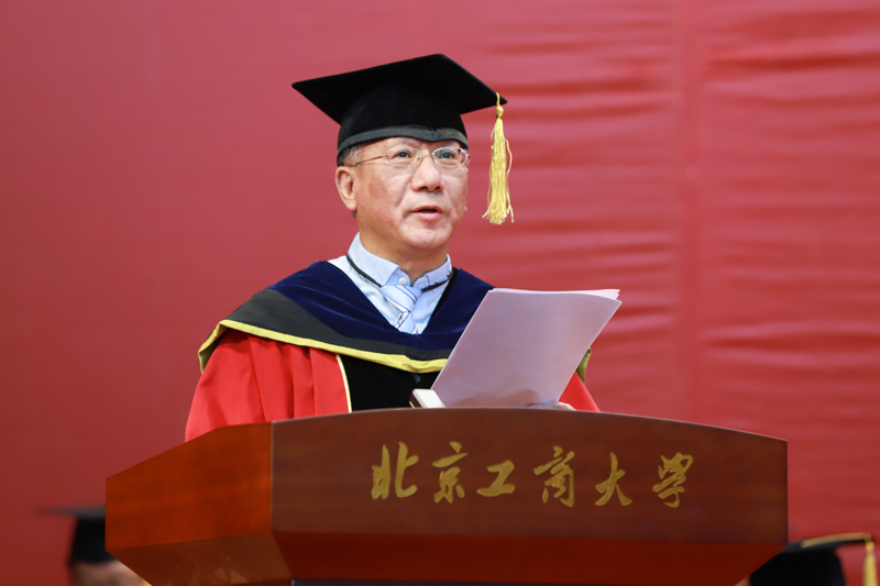 在雄壯的國(guó)歌聲中,典禮正式開始。副校長(zhǎng)謝志華宣讀《北京工商大學(xué)關(guān)于2018屆研究生準(zhǔn)予畢業(yè)及學(xué)位授予的決定》,副校長(zhǎng)李朝鮮宣讀《北京工商大學(xué)關(guān)于表彰2018屆優(yōu)秀畢業(yè)研究生的決定》。2018年,我校共有3名博士生、926名全日制碩士研究生獲得畢業(yè)證書,共有3名博士研究生被授予博士學(xué)位,945名碩士研究生(含非全日制和同等學(xué)力)被授予碩士學(xué)位;有77名研究生被評(píng)為校級(jí)優(yōu)秀畢業(yè)生,其中38名研究生被推薦為市級(jí)優(yōu)秀畢業(yè)生。