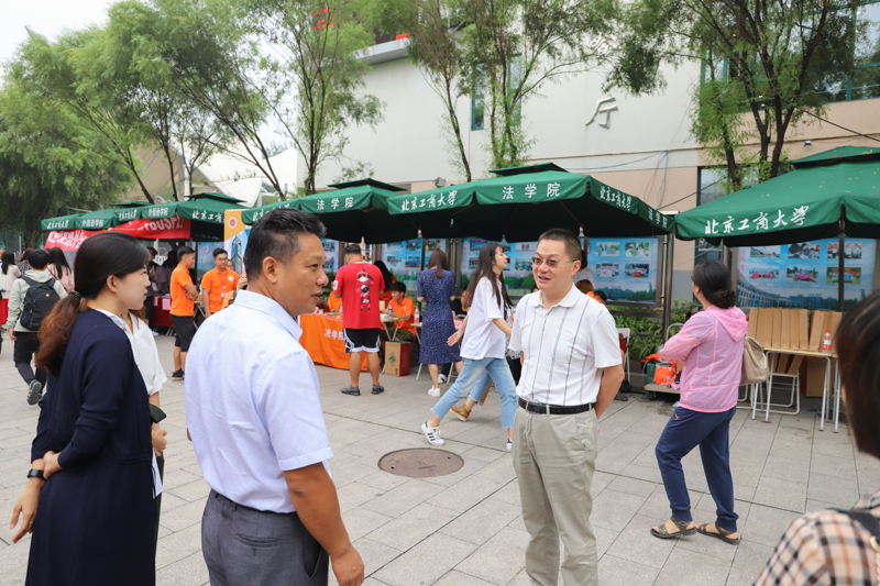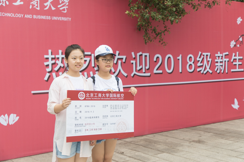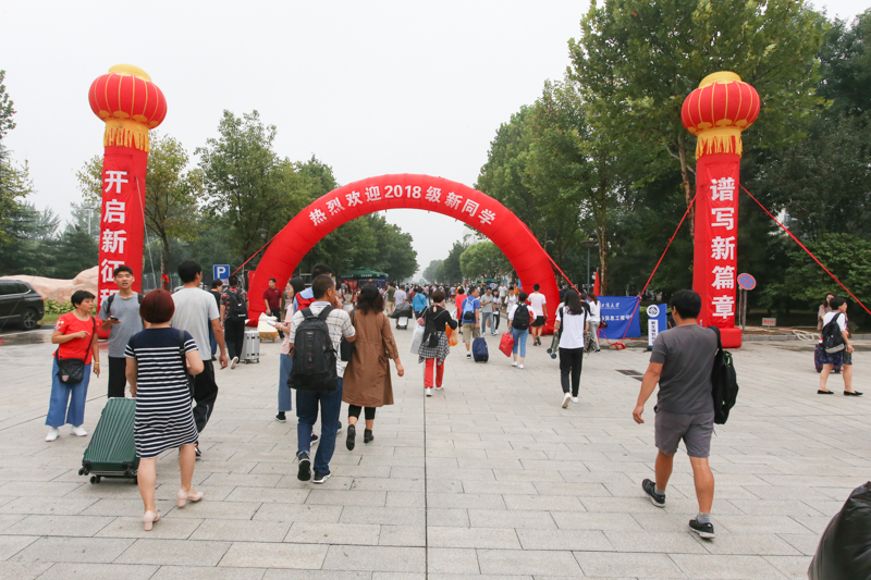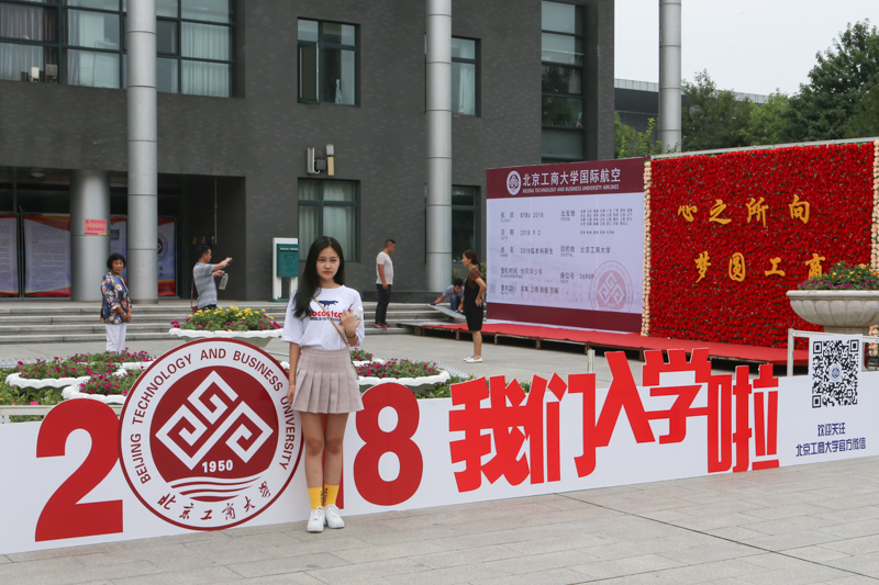 校門(mén)口“熱烈歡迎2018級(jí)新同學(xué)””“2018我們?nèi)雽W(xué)啦” “我愛(ài)北工商”“開(kāi)啟新征程、譜寫(xiě)新篇章”的紅色迎新拱門(mén)、燈柱和條幅等顯得格外喜慶和醒目。