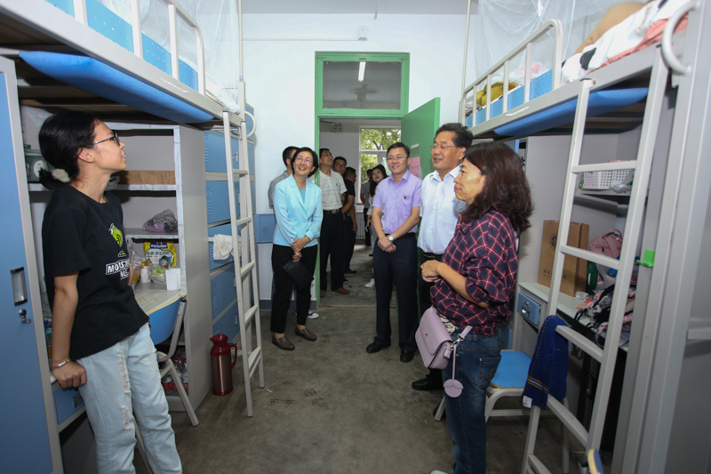 學(xué)校領(lǐng)導(dǎo)孫寶國(guó)、張德玉、李朝鮮、張?jiān)拧⑧嵨募t、方德英、董竹娟來(lái)到迎新現(xiàn)場(chǎng),了解新生報(bào)到注冊(cè)情況,親切詢(xún)問(wèn)工作人員迎新工作情況,走進(jìn)宿舍與新生和家長(zhǎng)們熱情交流,鼓勵(lì)同學(xué)們盡快適應(yīng)大學(xué)生活。