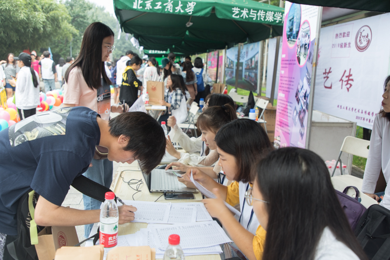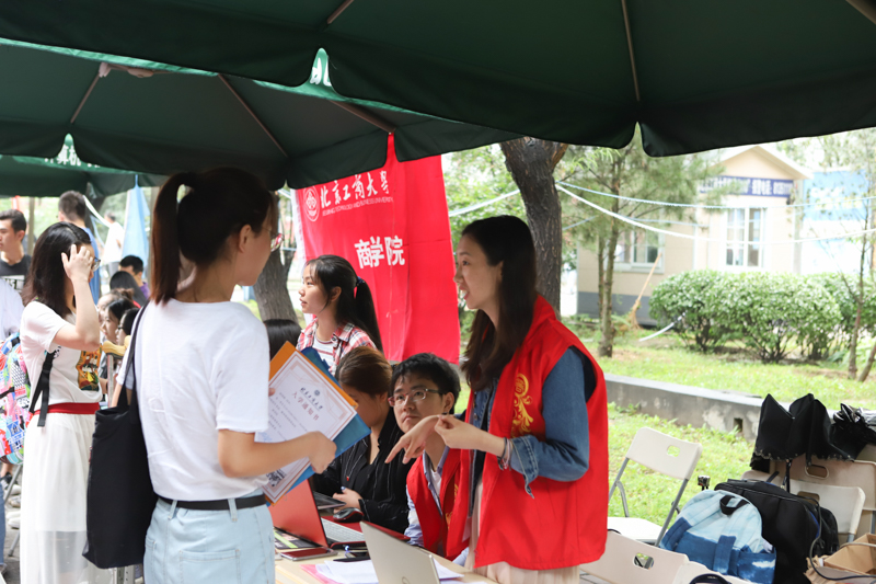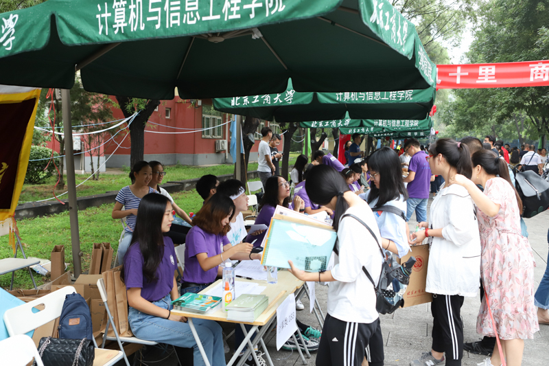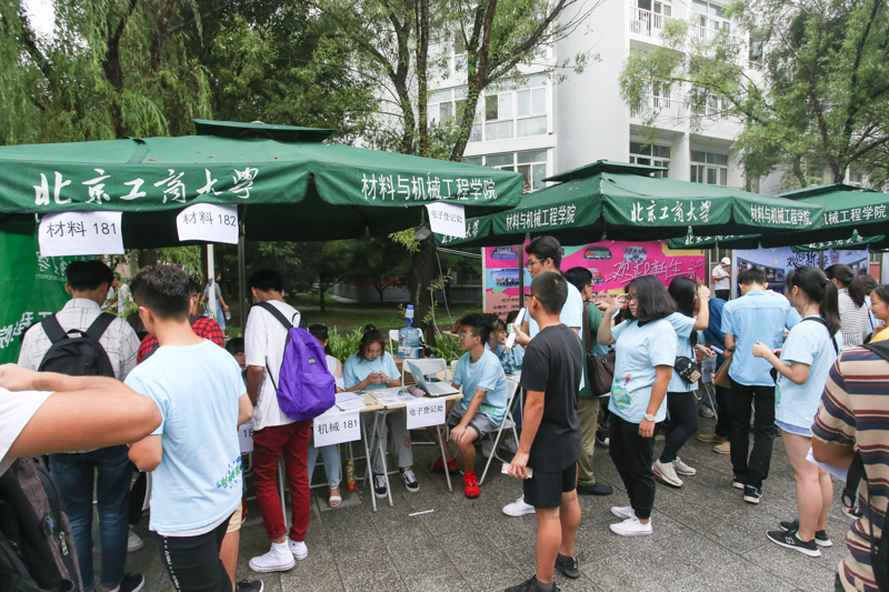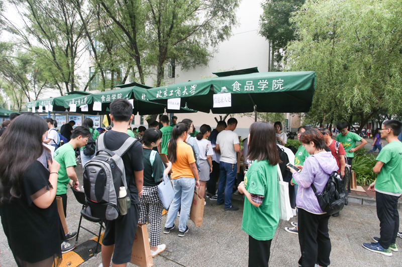 食品學(xué)院只有大一新生在良鄉(xiāng)校區(qū)學(xué)習(xí),為了能夠幫助新生們順利完成報(bào)到,學(xué)長(zhǎng)學(xué)姐們一大早從阜成路校區(qū)趕過(guò)來(lái)為新生們提供幫助。理學(xué)院、材料與機(jī)械工程學(xué)院和計(jì)算機(jī)與信息工程學(xué)院的報(bào)到處,新生們?cè)诶蠋熀蛯W(xué)長(zhǎng)學(xué)姐的引導(dǎo)幫助下有條不紊地進(jìn)行著報(bào)到;經(jīng)濟(jì)學(xué)院漂亮的氣球裝飾是熙攘人群的一抹亮色;商院的身著老虎玩偶服的激萌志愿者很大程度的幫助新生們緩解了緊張的心情,黨員愛(ài)心工作站也引來(lái)新生和家長(zhǎng)關(guān)注。