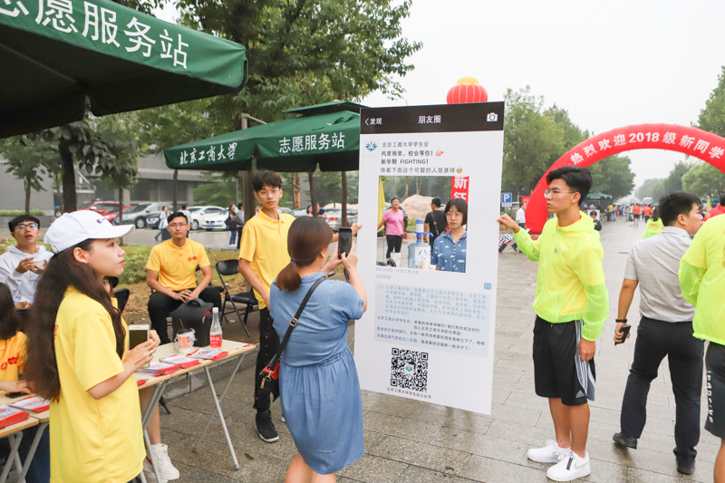 法學(xué)院在開(kāi)學(xué)前就舉辦了直播逛校園的活動(dòng),給每位新生的宿舍門(mén)上都貼了溫暖的寄語(yǔ),準(zhǔn)備了新老生見(jiàn)面會(huì)來(lái)幫助新生熟悉法學(xué)院這個(gè)大家庭;外國(guó)語(yǔ)學(xué)院迎新工作圍繞“安心,暖心,貼心”三心原則,結(jié)合學(xué)院“新相見(jiàn),夢(mèng)飛young” 迎新主題,打造學(xué)院2018特色迎新工作,學(xué)院還為新生們搭建Lucky Pick祝福墻,希望能夠?qū)⑼庹Z(yǔ)精神滲透進(jìn)學(xué)生生活中的點(diǎn)滴;藝術(shù)與傳媒學(xué)院的“北工商校園集章活動(dòng)”帶著萌新們踩點(diǎn)各個(gè)教學(xué)樓,迅速熟悉校園,學(xué)院設(shè)計(jì)專(zhuān)業(yè)教師和學(xué)生共同制作的報(bào)到指南在展示專(zhuān)業(yè)特色的同時(shí),也讓新生們更加了解和熱愛(ài)自己的專(zhuān)業(yè)。剛剛打卡回來(lái)的設(shè)計(jì)183 李煒瀅告訴記者:“學(xué)院設(shè)計(jì)的這個(gè)指南很漂亮,走了一圈,感覺(jué)學(xué)校環(huán)境很好。”