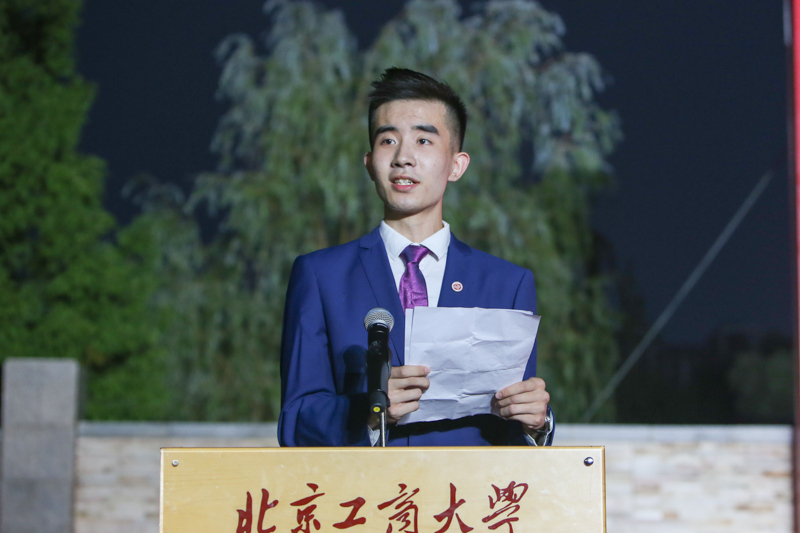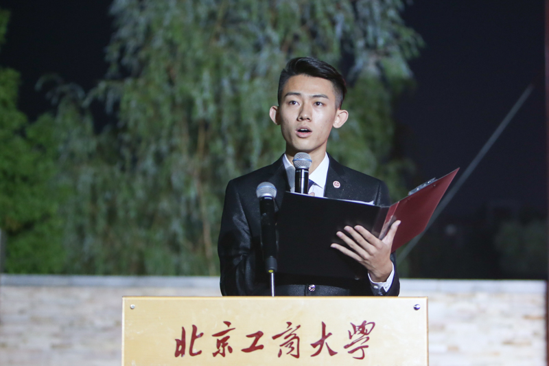 在校生代表校學生會主席商學院會計163班陸聰向新加入北工商大家庭的 2018級全體同學表示歡迎。他通過身邊同學的故事分享了怎樣通過努力完成從高中到大學的轉變的經驗,介紹了學校為學生提供的實現夢想實現個人價值的學術競賽、科技活動、社團協會等良好平臺。他建議學弟學妹們,能夠在紛繁的選擇面前“選你所愛”,不要亂了節奏;在各種誘惑面前“愛你所選”,不要丟了節奏;在遭遇失敗的時候,執著夢想,堅守節奏;在壓力過大的時候,保持冷靜,穩住節奏。在北工商這個舞臺上,堅持為夢想努力,讓大學四年成為一生中最美好、最朝氣、最難忘、最有價值的時光。