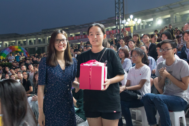 典禮現場,學校還為當天過生日的來自法學院的新生安亞龍、肖秋萍送上了生日祝福。