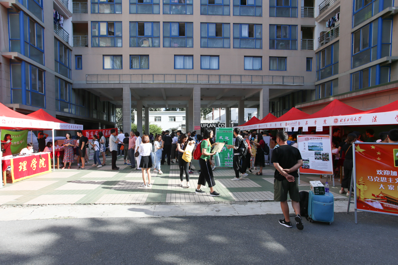 在報到現場,學校為新生們提供了暖心又貼心的一站式服務。在阜成路東校區雙子樓前的廣場上,研究生院在現場設立了報到咨詢點,各學院設立了報到事務接待點,后勤基建處、保衛處、網絡中心為新生報到提供了有力的后勤支持和安全保障。
