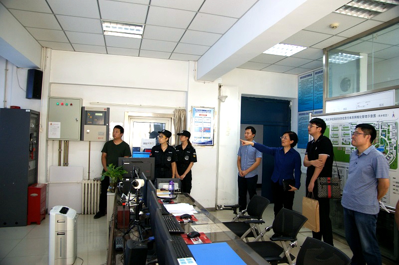張耘副校長和相關單位負責人陪同督導組實地檢查了學校應急指揮中心、耕耘樓實驗室等部位。在學校應急指揮中心,檢查組通過視頻監控系統調閱查看了兩校區重點部位以及消防報警主機運行情況;保衛處介紹了學校擬測試中的人臉識別系統建設情況。隨后,督導組一行檢查了理學院實驗室安全情況,理學院董銀卯教授為督導組介紹了實驗室的基本情況,張耘副校長介紹了我校實驗室?;钒踩芾淼挠嘘P工作。
