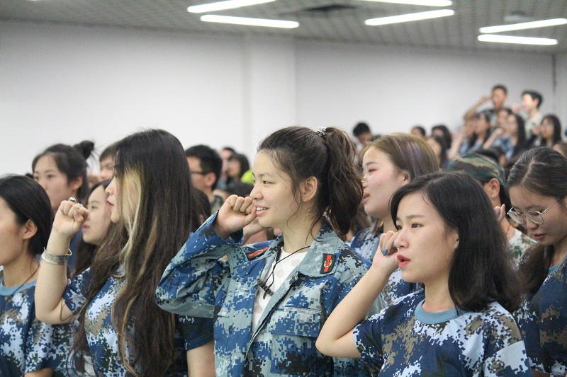 學院黨委副書記劉晶老師為18級新生進行了軍訓動員,她講述了軍訓目的和意義同時向大家提出了“提高認識、居安思危;嚴明紀律、服從指揮;端正態度、自立自強”三點要求。 輔導員趙曉萌詳細地介紹了軍訓的相關安排和注意事項,強調了軍訓的重要性和必要性。連續兩年三次陪伴學生們前往康莊基地進行軍事訓練的輔導員李昀澄針對軍訓生活上可能出現的問題給出了寶貴意見,并告誡同學們“軍訓是一種磨練,盡情去享受這次旅程,磨煉自己的意志。”18級學生代表魏子豪帶領全體18級新生進行軍訓宣誓,現場氣氛莊嚴肅穆,同學們右手握拳高高舉起,神情專注。