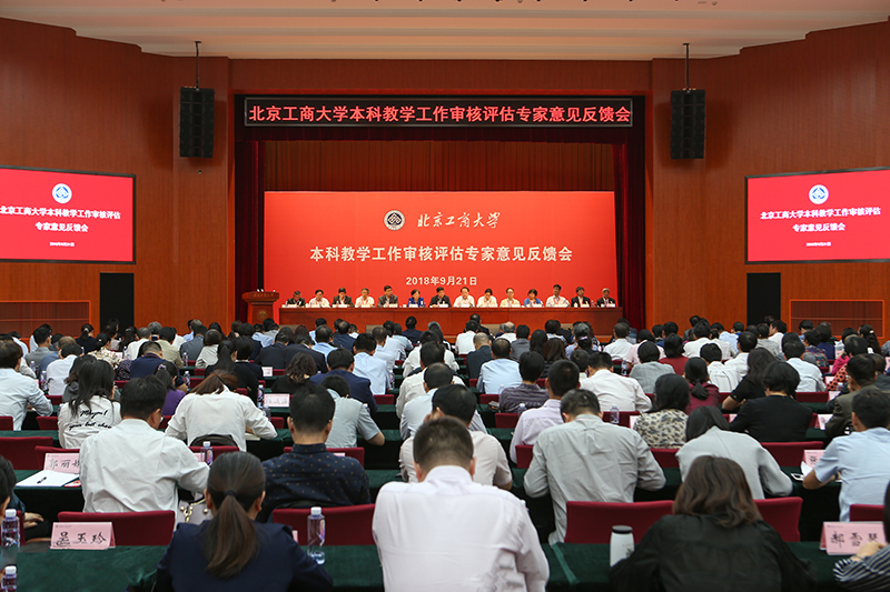9月21日上午,我校本科教學工作審核評估專家反饋會在阜成路校區召開。以中國高等教育學會原會長瞿振元教授為組長的專家組全體成員,北京市委教育工委副書記、北京市政府教育督導室主任唐立軍,北京市教委副主任葉茂林以及市教委、市政府教育督導室相關處室負責人出席反饋會。學校領導,全體中層干部,學校督導專家代表、教師代表參加會議。反饋會由瞿振元組長主持。