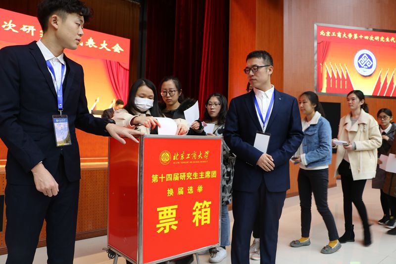 會議聽取、審議并表決了《北京工商大學第十三次研究生代表大會代表資格審查報告》《北京工商大學第十三屆研究生會工作報告》《北京工商大學第十三屆研究生會經(jīng)費使用報告》《北京工商大學研究生會章程修訂案》。大會經(jīng)由第十四屆研究生會主席團候選人競選展示,通過代表無記名投票的方式,差額選舉產(chǎn)生了我校第十四屆研究生會主席團成員。