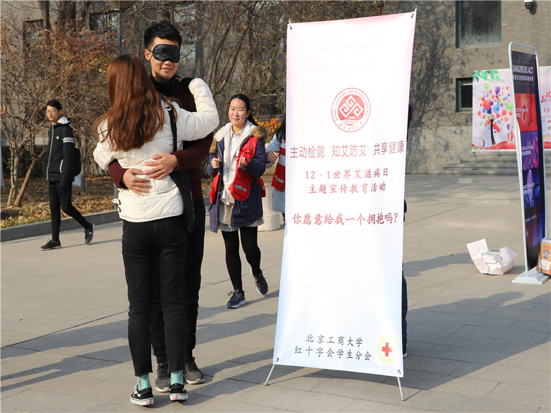 活動通過向?qū)W生們發(fā)放防艾宣傳資料、現(xiàn)場講解、展板宣傳等方式向我校師生宣傳艾滋病預(yù)防知識,增強(qiáng)在校大學(xué)生的自我防范意識和防護(hù)能力。校紅十字會的學(xué)生志愿者在現(xiàn)場還蒙上眼睛,扮成“艾滋病人”,希望能夠得到一個擁抱。路過學(xué)生們在質(zhì)疑、躲避、猶豫的眼神中,紛紛伸出雙臂給了志愿者一個大大的愛心擁抱,志愿者感謝地說“艾滋病主要由三個途徑傳播,性傳播、母嬰傳播、血液傳播!但日常接觸如握手、擁抱、聊天、共同吃飯、共用公共物品、游泳都不會傳染。”學(xué)生們之后紛紛在宣傳板上進(jìn)行愛心簽名,寫下對此次防艾宣傳的祝福語。校紅十字會學(xué)生分會指導(dǎo)老師黨浩表示“希望以‘世界艾滋病日’宣傳活動周為契機(jī),讓同學(xué)們更多地了解艾滋病知識,消除誤解和恐懼,積極參與防艾宣傳活動,共同營造一個健康的校園環(huán)境”。
