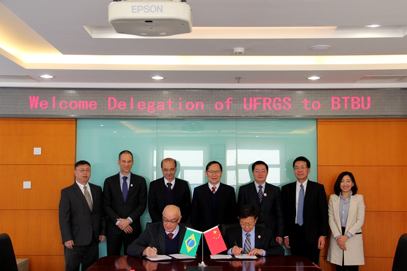 會談后,孫寶國校長和瑞奧·文森特·奧普曼校長分別代表兩校續簽了北京工商大學和巴西南大河州聯邦大學合作備忘錄。