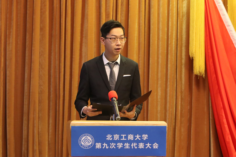校學生會主席陸聰同學代表北京工商大學第八屆學生會向第九次學生代表大會作了題為《牢記使命,永跟黨走,開拓進取,勇擔重任——為推進學校“雙一流”建設匯聚青春力量》的報告。報告對我校上一屆學生會工作進行了系統、全面的總結,并對我校學生會今后的工作進行了規劃,明確了工作思路和工作任務。校學生會副主席廖英琛同學代表提案工作組向大會作了提案工作報告,提案覆蓋范圍廣泛,充分體現了同學們的責任感和使命感。