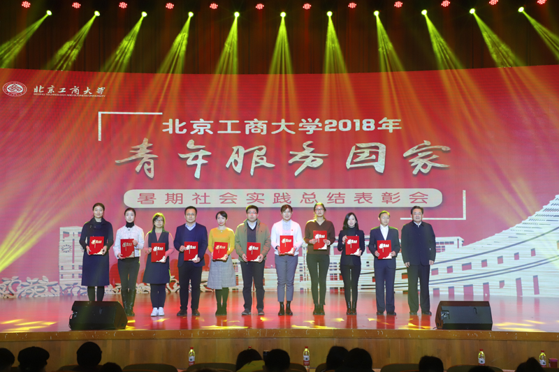校團委書記王海偉宣讀了《關于表彰北京工商大學2018年“青年服務國家”暑期社會實踐優秀團隊和個人的決定》,與會領導為獲得暑期社會實踐優秀團隊、先進個人、先進工作者的集體和個人頒獎。
