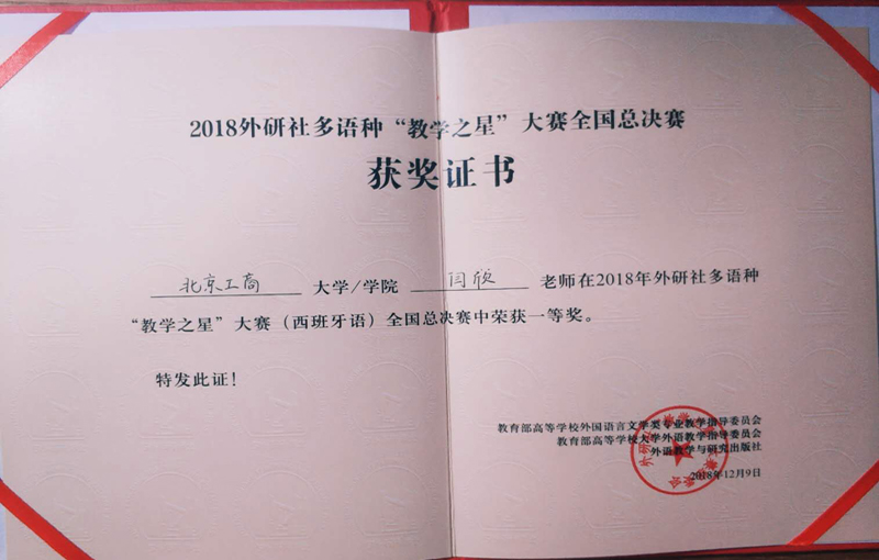 12月8日至9日, 2018外研社多語種“教學之星”大賽全國總決賽在京舉辦,我校外國語學院西班牙語教師閆欣代表我校參賽,榮獲全國總決賽一等獎。