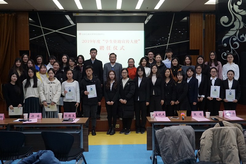 1月2日下午,我校2019年度“學(xué)生資助宣傳大使”聘任儀式在良鄉(xiāng)校區(qū)舉行。學(xué)校黨委副書記張德玉出席活動并講話。學(xué)生處副處長蓋曉慶、學(xué)生資助中心負責老師、學(xué)院學(xué)生資助專項工作輔導(dǎo)員、30名新聘“學(xué)生資助宣傳大使”以及80名學(xué)生代表參加活動。