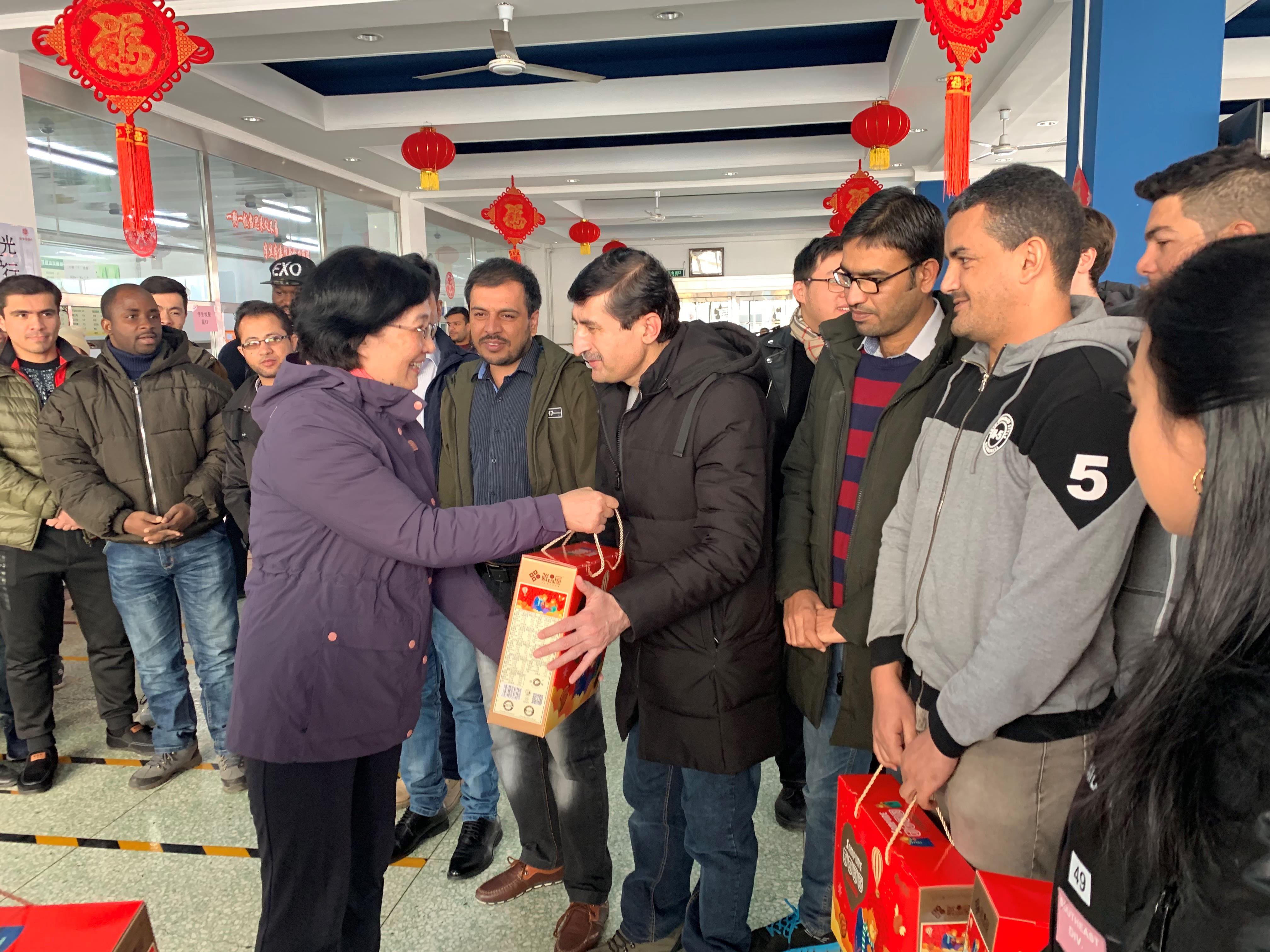 學(xué)校辦公室主任王小藝、國際交流與合作處處長劉影、學(xué)生處處長呂素香、保衛(wèi)處處長馬韜光、后勤基建處處長吉濤、后勤基建處副處長楊會(huì)如、付仕倫等陪同慰問。