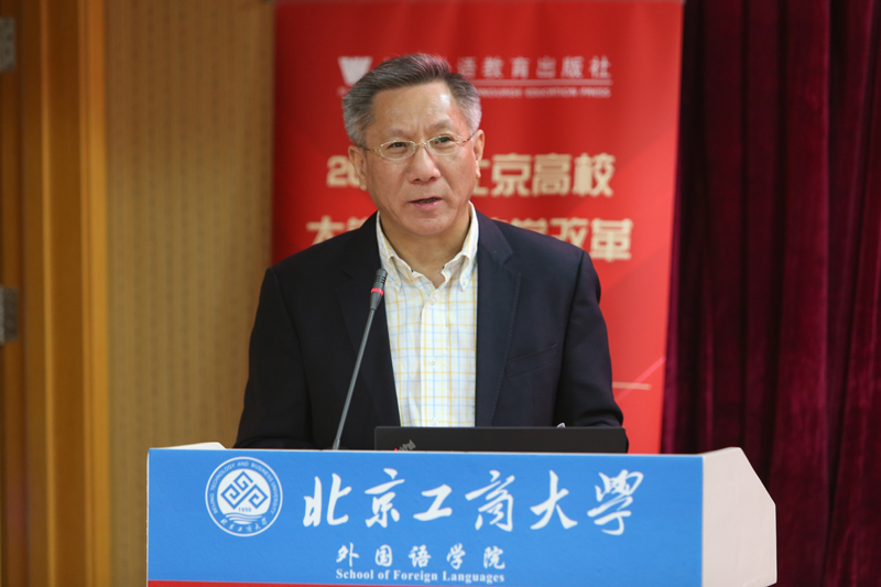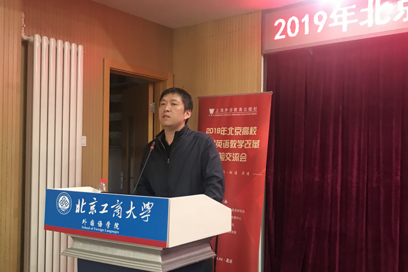 4月4日,由北京市高等教育學(xué)會(huì)大學(xué)英語(yǔ)研究會(huì)、北京高校大學(xué)英語(yǔ)教育發(fā)展中心、上海外語(yǔ)教育出版社和我校外國(guó)語(yǔ)學(xué)院共同舉辦的2019年北京高校大學(xué)英語(yǔ)教學(xué)改革經(jīng)驗(yàn)交流會(huì)在阜成路校區(qū)召開(kāi)。會(huì)議以“守正 創(chuàng)新 融通 共進(jìn)”為主題,探索新時(shí)代大學(xué)英語(yǔ)教學(xué)如何堅(jiān)守本質(zhì),并在砥礪前行的征途中不斷創(chuàng)新。我校副校長(zhǎng)謝志華教授、北京市教委高教處處長(zhǎng)劉霄、北京市高教學(xué)會(huì)大學(xué)英語(yǔ)研究會(huì)理事長(zhǎng)張文霞教授、北京高校大學(xué)英語(yǔ)教育發(fā)展中心主任張喜華教授、上海外語(yǔ)教育出版社副社長(zhǎng)葉青出席會(huì)議。