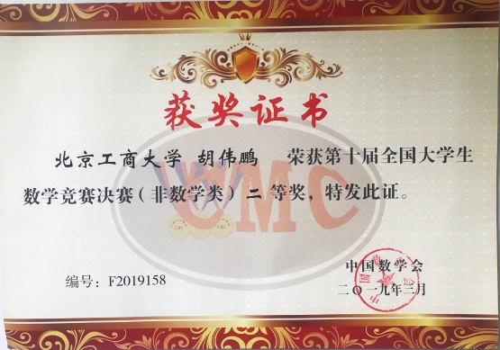 決賽期間,全國共有來自31個賽區197所高校的503名本科生參與,分為數學專業組(高年級)、數學專業組(低年級)和非數學專業組三個組別。經過與北京大學、清華大學、中國科技大學、復旦大學等眾多985、211高校優秀學子的比拼,胡偉鵬同學取得了非數學專業組二等獎的好成績。這是2011年以來我校學子在全國大學生數學競賽決賽階段獲得的最好成績。