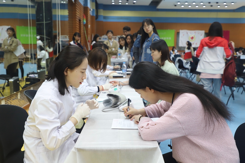 4月24日,由學(xué)校學(xué)生工作部主辦,校紅十字會(huì)學(xué)生分會(huì)、藝術(shù)與傳媒學(xué)院和經(jīng)濟(jì)學(xué)院承辦的無(wú)償獻(xiàn)血活動(dòng)在學(xué)活大廳舉行。不到8點(diǎn),準(zhǔn)備獻(xiàn)血的同學(xué)們便等候在報(bào)到處,整齊排隊(duì)拿表、填表。與此同時(shí),志愿者們也早早在學(xué)活大廳就位,整裝待發(fā),將一切準(zhǔn)備工作提前完成。
