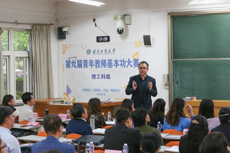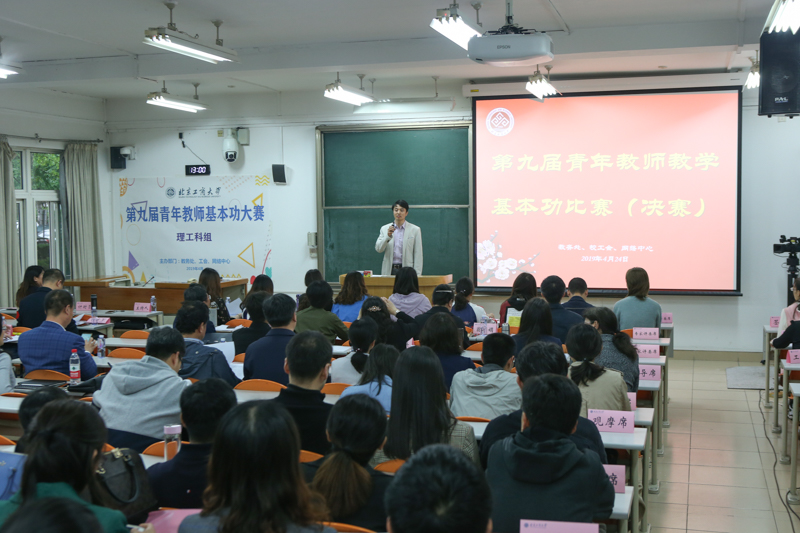 4月24日下午,由教務(wù)處、校工會和網(wǎng)絡(luò)中心聯(lián)合舉辦的學(xué)校第九屆青年教師教學(xué)基本功比賽在阜成路校區(qū)舉行。來自11個教學(xué)單位的18位青年教師通過學(xué)院的預(yù)賽和復(fù)賽最終進入學(xué)校總決賽,一展教師風(fēng)采和教學(xué)實力。學(xué)校副校長謝志華、鄭文紅分別到文科組和理工科組決賽現(xiàn)場觀摩并講話,240余名教師和學(xué)生代表觀摩了比賽。