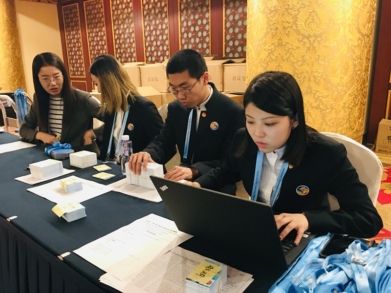 注冊中心內(nèi)負責12個分論壇幾千名參會代表的證件發(fā)放與查詢工作也如火如荼的進行。志愿者們要負責近4000份物料分裝工作以及證件發(fā)放與查詢工作。如此龐大的證件數(shù)量需要志愿者們時刻保持細心,并以耐心的態(tài)度去處理每一個證件反饋信息。由于參加各個分論壇的代表、嘉賓到場時間相對集中,因此提供通暢的注冊通道、確保高效地處理問題是志愿者們的工作目標,志愿者們彼此勉勵、相互配合、細致認真、確保每一個環(huán)節(jié)毫無疏漏。盡管每天埋頭和文件、證件打交道,這批志愿者的工作在峰會正式開始前便已經(jīng)結(jié)束,沒有參與到論壇會場服務,但是志愿者們并不遺憾,始終以最良好的形象,站好此次“一帶一路”志愿服務工作的第一班崗。
