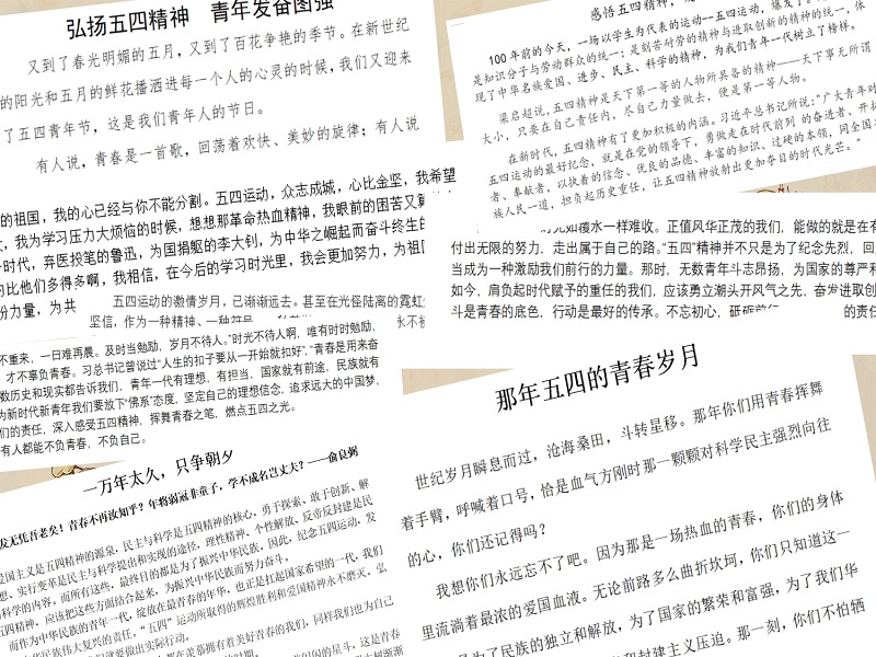 學(xué)生第八黨支部舉辦了以“重溫歷史進(jìn)程,感懷五四精神,堅(jiān)定理想信念”為主題的征文活動(dòng),支部黨員、預(yù)備黨員、積極分子積極參與,截至4月23日,總共收到49份文章。在征文中,同志們紛紛表示了對(duì)五四運(yùn)動(dòng)以及對(duì)革命先烈的緬懷,同時(shí)表達(dá)了作為新時(shí)代的青年,時(shí)代賦予了我們新的歷史使命---實(shí)現(xiàn)中華民族的偉大復(fù)興,實(shí)現(xiàn)中國(guó)夢(mèng)。大家深感身上肩負(fù)著國(guó)家的未來,民族的發(fā)展,應(yīng)鍛造剛毅堅(jiān)定、吃苦耐勞的品格,培育心系群眾、愛民為民的家國(guó)情懷,鑄就不變的“初心”和堅(jiān)定的理想信念,養(yǎng)成善于思考、注重實(shí)踐的良好習(xí)慣,將先輩們憂國(guó)憂民,不屈不撓、樂于奉獻(xiàn)和敢于斗爭(zhēng)的五四愛國(guó)精神發(fā)揚(yáng)光大。