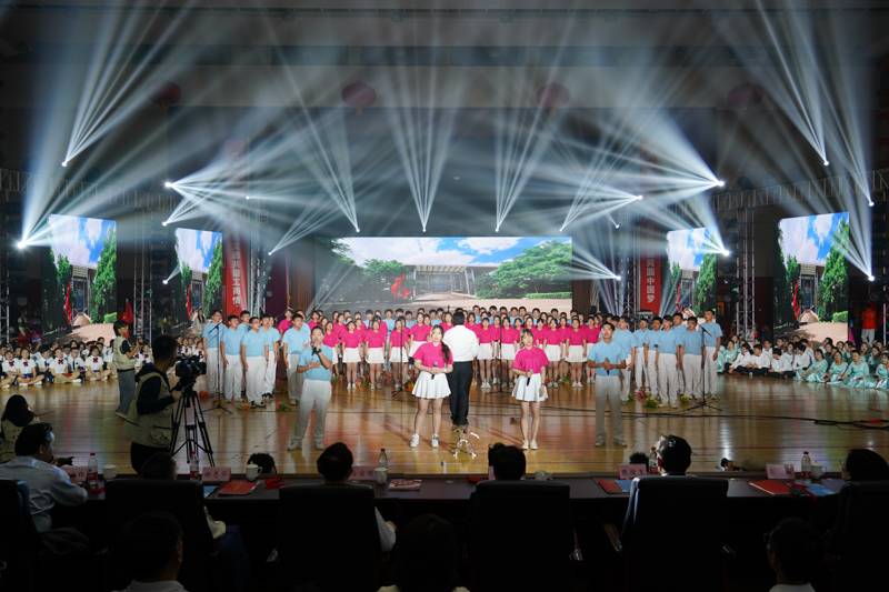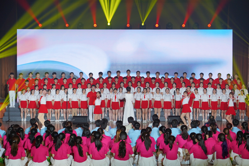隨后,歌會(huì)進(jìn)入了下篇——新征程,回望歷史成就,踏向新征程。這一百年是奮斗的一百年,是進(jìn)取的一百年,我們的青年前仆后繼投入到建設(shè)國家的光榮道路上,一百年是個(gè)節(jié)點(diǎn),象征著我們的青年踏向了新的征程!理學(xué)院的《國家》《新的天地》蓬勃向上,飽含著青年學(xué)子對祖國新天地的向往和面對未來征程的必勝之心;計(jì)算機(jī)與信息工程學(xué)院的《我和我的祖國》《強(qiáng)國一代有我在》歌曲旋律優(yōu)美,磅礴大氣,充滿了活力與激情,機(jī)器人動(dòng)感的舞蹈配上同學(xué)們充滿活力的演繹,將活動(dòng)推向高潮;在簡潔快速的交換場地后,法學(xué)院激情獻(xiàn)唱的《紅旗飄飄》《邁向新征程》鏗鏘有力,慷慨激昂,為歌會(huì)帶來了精彩難忘的收官。
