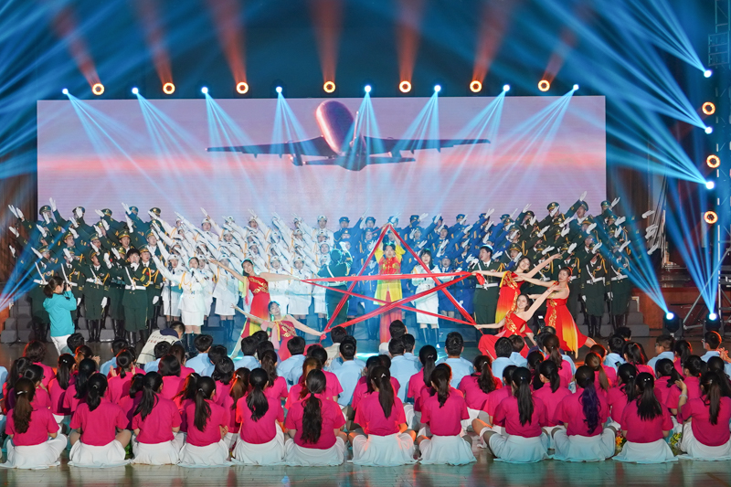 在青春靚麗的開場舞《青春暢想》之后,在場的共青團(tuán)員進(jìn)行了莊嚴(yán)的入團(tuán)宣誓,青春歌會(huì)隨之拉開序幕。此次歌會(huì)分為新時(shí)代、新夢想、新征程三個(gè)篇章。9個(gè)學(xué)院的參賽隊(duì)伍依次登場。各代表隊(duì)精神抖擻,用嘹亮的歌聲表達(dá)出傳承和發(fā)揚(yáng)革命光榮傳統(tǒng)的堅(jiān)定信念。青春歌會(huì)向祖國獻(xiàn)禮,祝福祖國繁榮昌盛,展現(xiàn)新時(shí)代的青年為祖國美好的明天貢獻(xiàn)力量。