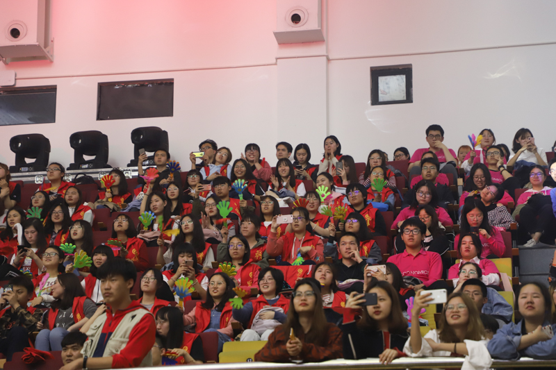 活動(dòng)上篇的主題是新時(shí)代,在五四青年節(jié)一百年之際,我們的祖國繁榮昌盛,奔向復(fù)興,步入了新時(shí)代!藝術(shù)與傳媒演唱的《復(fù)興的力量》《再一次出發(fā)》滿懷深情、堅(jiān)定剛毅,展現(xiàn)了中華兒女百煉成鋼的壯志豪情;隨后,經(jīng)濟(jì)學(xué)院在場地內(nèi)激情獻(xiàn)唱,帶來的《在你偉大的懷抱里》《奮進(jìn)新時(shí)代》奏響時(shí)代強(qiáng)音,彰顯對祖國的熱愛和奔向美好未來的信心;商學(xué)院表演的《我們的新時(shí)代》《有我在》唱出對未來的向往和期待,展示了中華民族的信仰與力量。細(xì)心的同學(xué)發(fā)現(xiàn)了比賽的形式有別于往年,每組第一支和第三支隊(duì)伍在舞臺(tái)上演出,第二支在場地內(nèi)演出,主持人串詞和學(xué)院串聯(lián)銜接緊密,各組之間也形成了很好的默契。這種改變不但讓觀眾們耳目一新,更加體現(xiàn)了活動(dòng)策劃人員的別出心裁,使歌會(huì)整體具有鮮明的層次感與形式感。